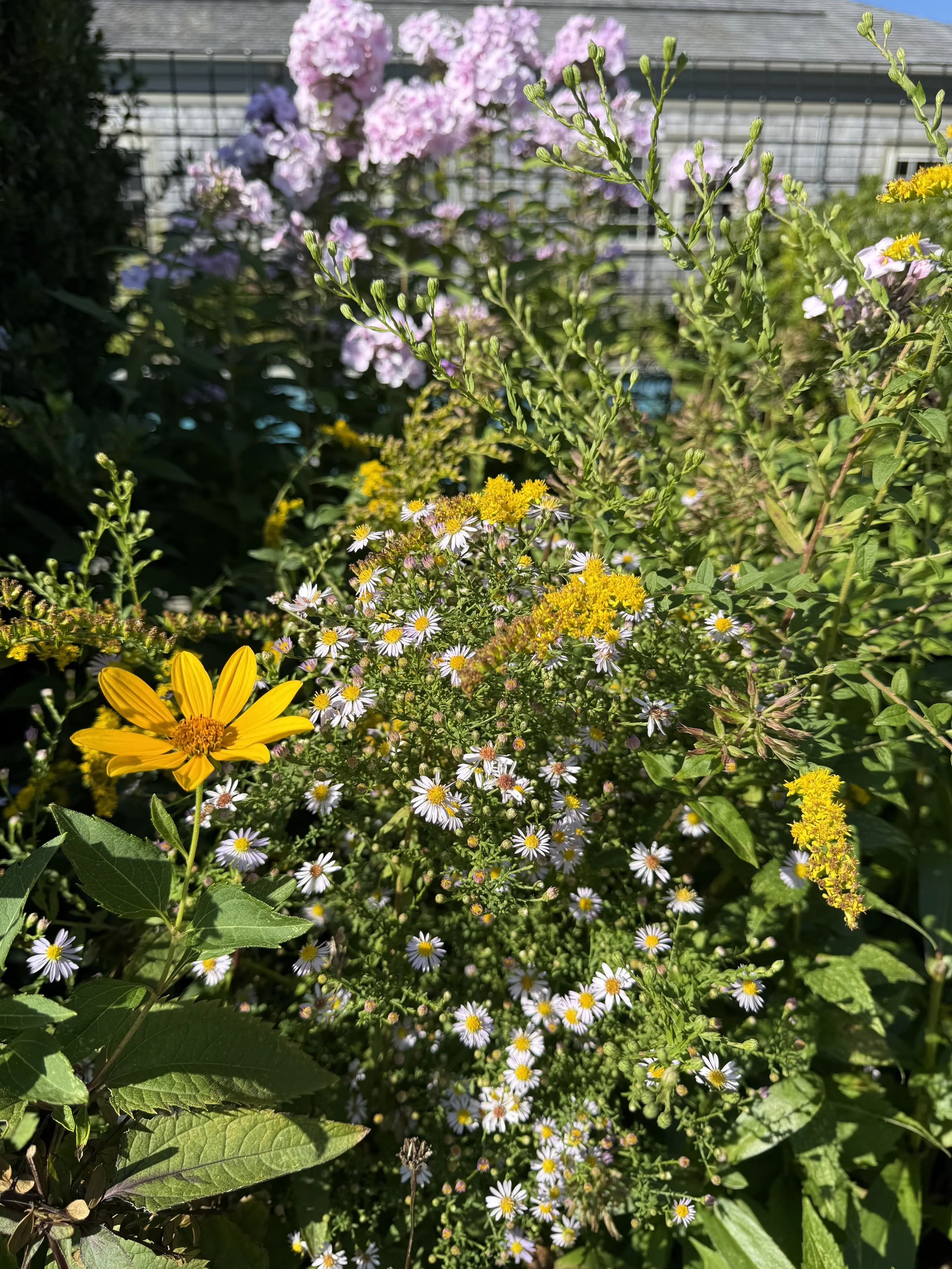 The photo above shows goldenrod and aster returning to a garden of ornamental plants, including false sunflower and phlox. By stepping back from over-weeding, these native plants were able to re-establish themselves--adding interest, beauty, and most importantly, a valuable floral resource for pollinators.